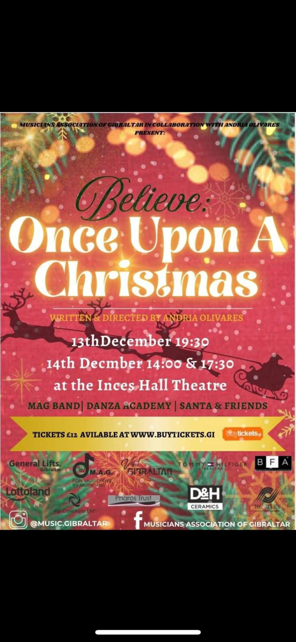 Musicians Association of Gibraltar, in collaboration with Andria Olivares, are proud to present this years Christmas spectacular: 'Believe: Once Upon A Christmas'.