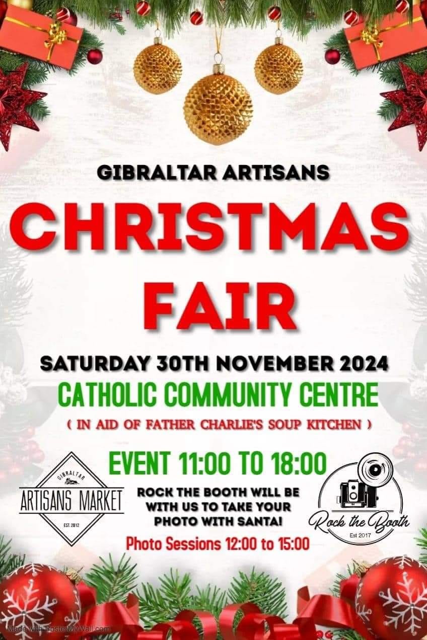 Come and join the Gibraltar Artisans Christma Fair and see all the things done from our very talented crafters. Santa will also be paying a visit so come along and have a picture taken with him. All for a very worthy cause. Save the date.