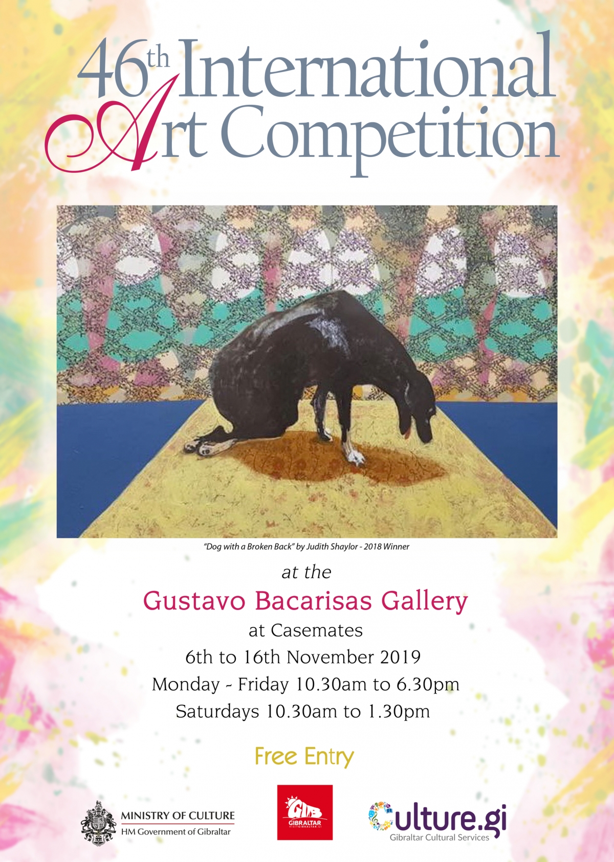 Gibraltar Cultural Services, on behalf of the Ministry of Culture, is inviting entries for the 46th Gibraltar International Art Competition. Entries will be exhibited at the Gustavo Bacarisas Galleries from the 6th to the 16th November 2019.