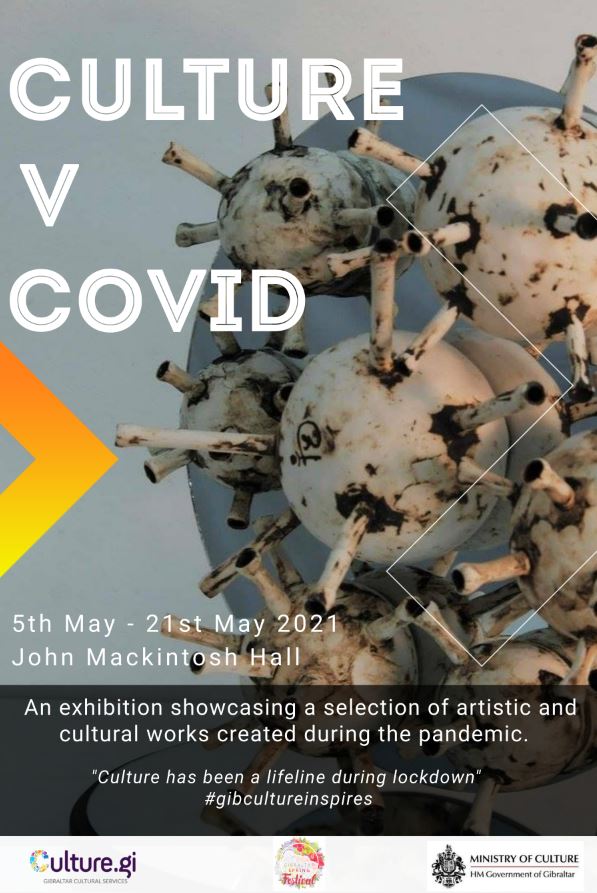 An exhibition to feature and celebrate artistic and cultural works produced during the last year will open at the John Mackintosh Hall on the 5th May 2021. Organised by Gibraltar Cultural Services on behalf of the Ministry of Culture, ‘Culture v Covid’ will showcase many artistic contributions created during the global pandemic and lockdowns.
