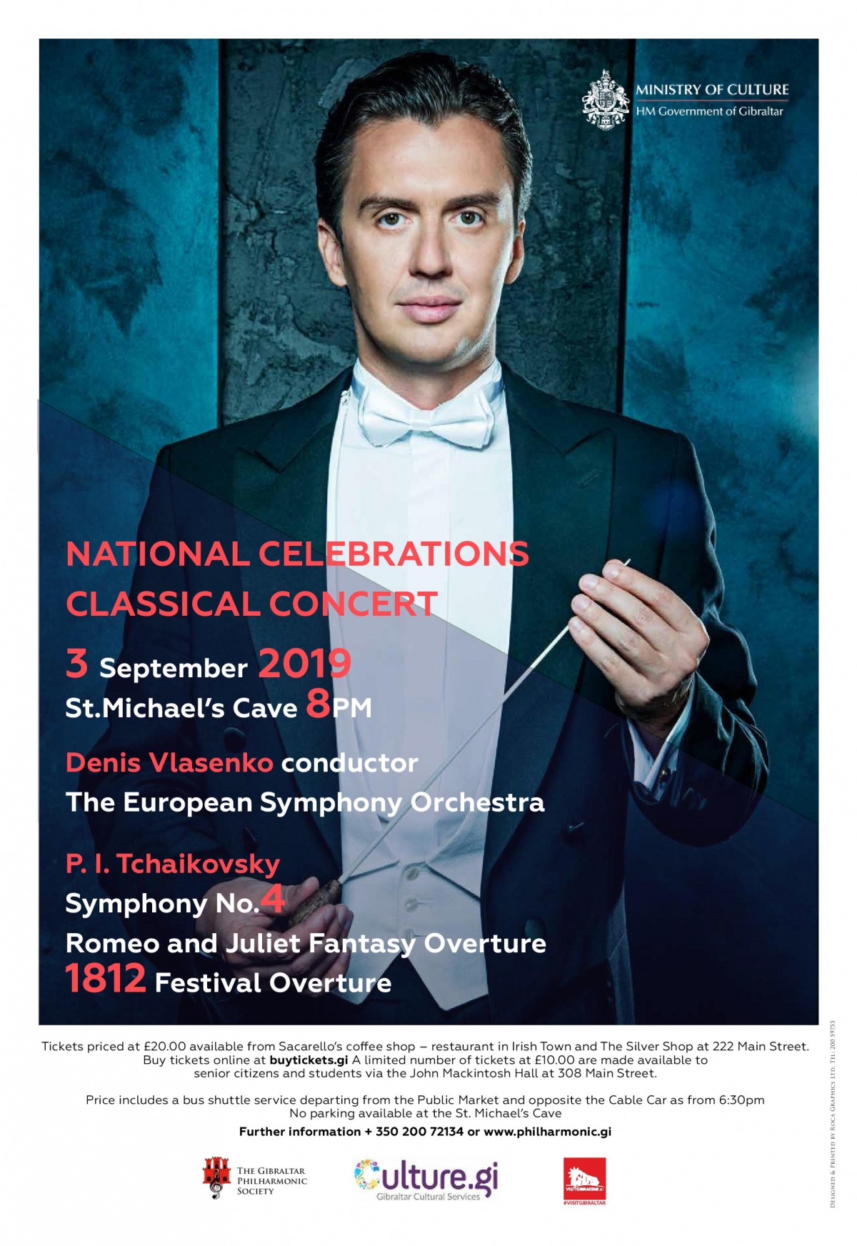 The Gibraltar Philharmonic Society, who organises this concert on behalf of HM Government of Gibraltar have been able to acquire the services of Denis Vlasenko (conductor) and the European Symphony Orchestra.